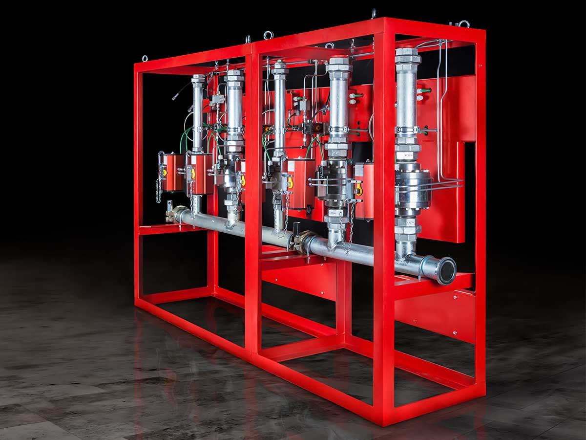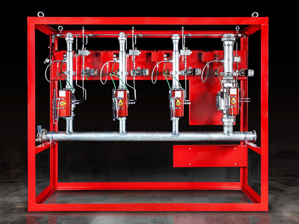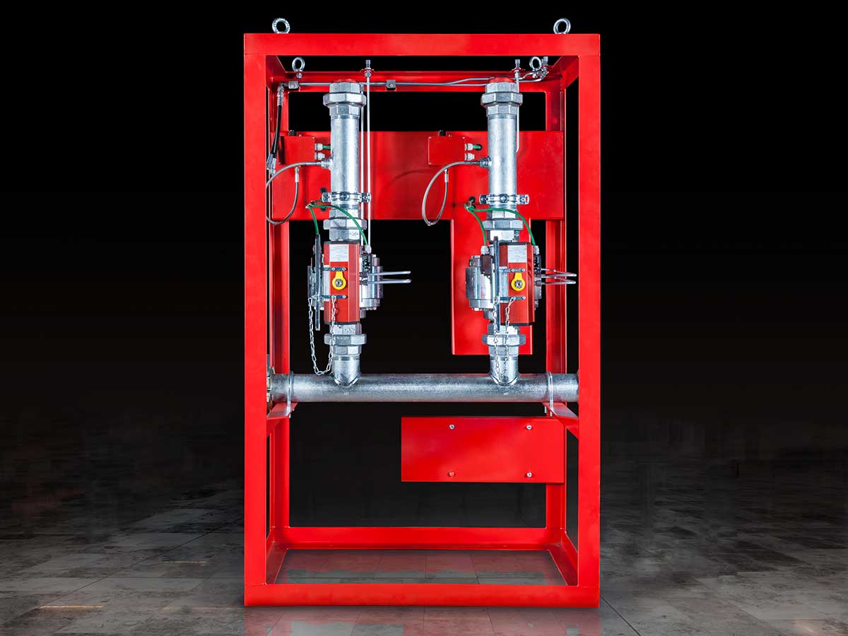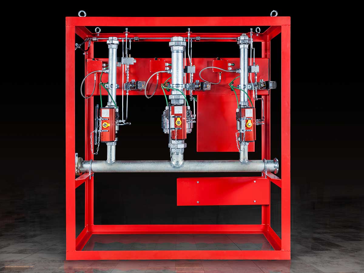 Hier werden Verteilerrohre und Druckminderer mit deren Zu- und Abgängen sowie die Steuerung und Regelung in einem Modul zusammengefasst. Diese kompakte Anlage wird vor Ort, (z.B. auf Baustellen, Bohrinseln, Museen) aufgestellt und mit wenigen Handgriffen in das Rohrleitungssystem eingefügt.